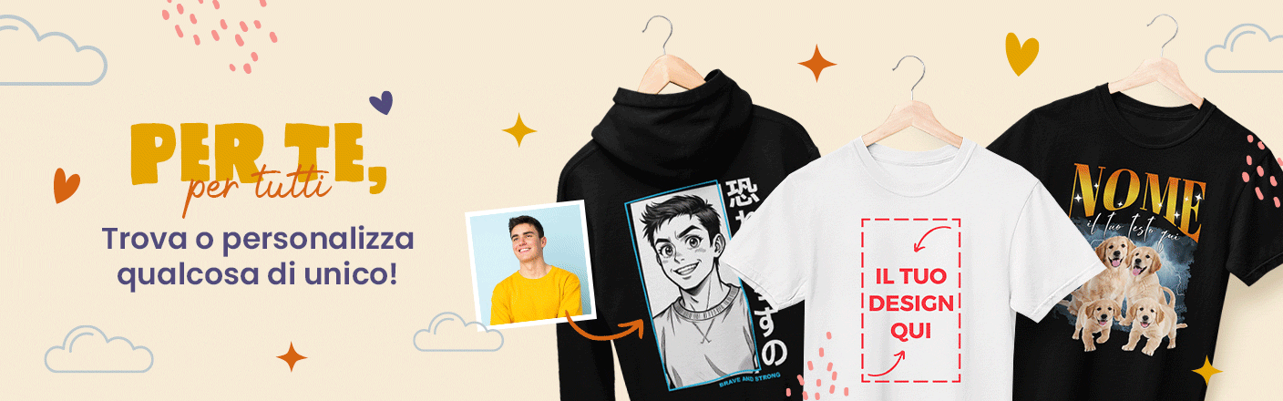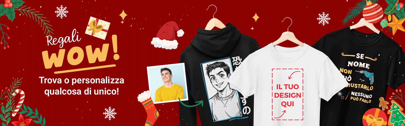 Se sei alla ricerca di idee originali per un regalo personalizzato, sul nostro sito troverai un'ampia gamma di articoli: una maglietta personalizzata, una felpa personalizzata creata apposta per te, o semplicemente una tazza personalizzata… abbiamo tutto ciò di cui hai bisogno!